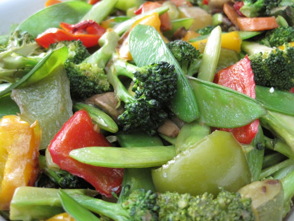 What is there to say? Summer is upon us. We are awash in the green, Midwestern heat and the farmer’s markets are in full swing. This dish is simple. Buy vegetables that you like to eat, those in their delectable summerific prime. Wash veggies. Cut veggies. Sauté in canola oil with a dash of sesame oil for flavor. Use a little butter if your diet allows. Add salt and pepper to taste. And grated ginger if you like. Everything tastes sweet and bright: the colors riot, the flavors dazzle, and the veggies do a hoochie-koochie dance in your mouth. You smile. It is summer after all.